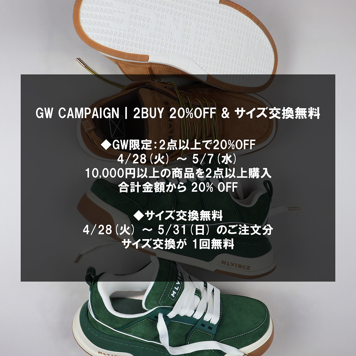 GW SPECIAL: 20% OFF 2+ Items (¥10k+) | Free Size Exchange