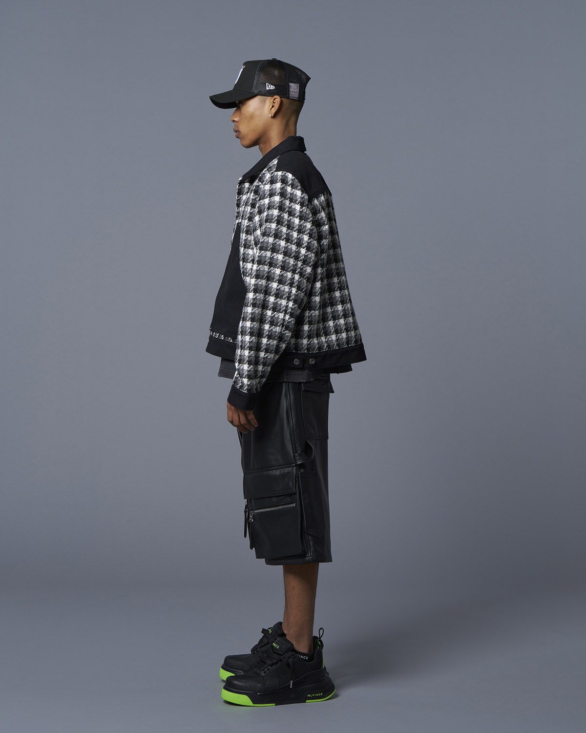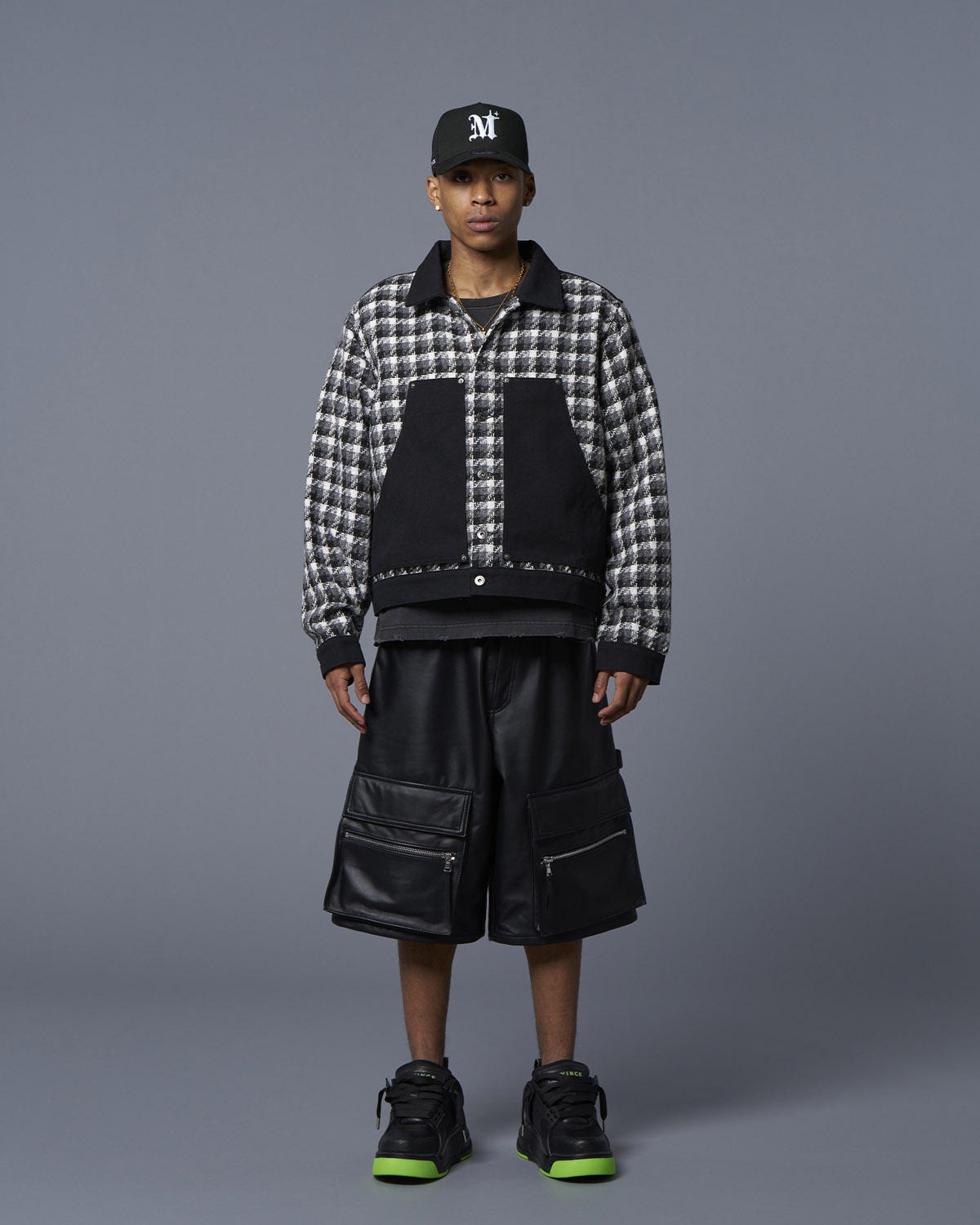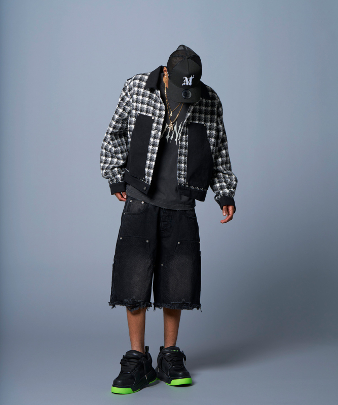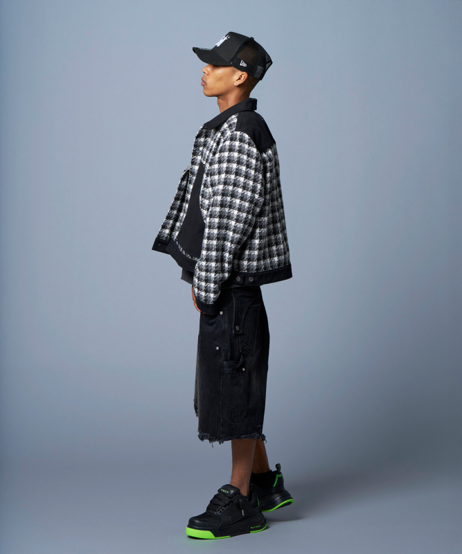 短丈のチェック柄トラッカージャケット。